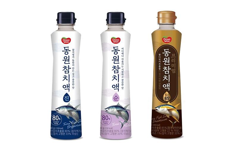 동원F&B는 참치액 3종을 출시했다. 동원참치액 진, 순, 프리미엄의 3종이다. 동원참치액 진은 참치액 본 연의 풍미가 강해 국물 요리는 물론 조림과 찜, 볶음 요리 등에 다양하게 활용할 수 있다. 순은 참치액의 훈연향은 줄이고 멸치 숙성액을 넣어 시원하고 깔끔 한 맛을 낼 수 있다. 프리미엄은 고급 참치 어종인 황 다랑어 추출물을 함유한 제품으로, 사양벌꿀, 감초, 다시마 등 다양한 부재료도 들어 있다. 가장 비싼 제 품인 프리미엄의 대형마트 기준 판매가는 500ml 기 준 14,980원이다.