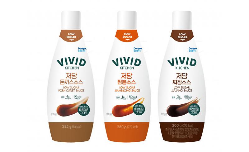 동원홈푸드는 헬시플레저 트렌드에 맞춰 당 함량을 낮춘 비비드키친 저당 소스 3종을 출시했다. 저당 소 스 3종은 짜장 소스, 짬뽕 소스(이상 3,980원), 돈가 스 소스(3,580원)로 구성됐다. 짜장, 짬뽕 등 중식 메 뉴나 돈가스와 같은 일반식의 당 함량이 부담스러웠 던 소비자들의 니즈에 맞춰 당류 함량을 크게 낮췄다.