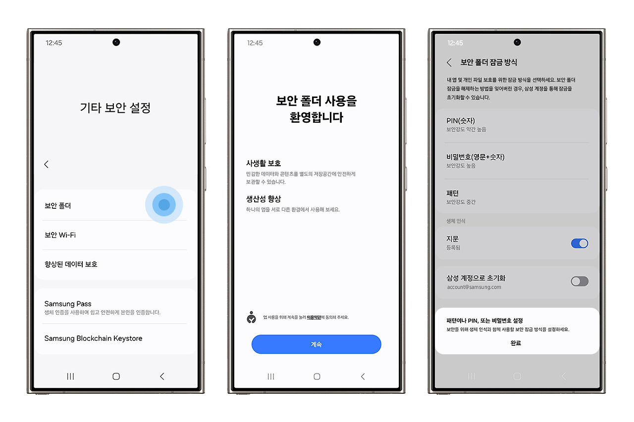 설정 > 보안 및 개인정보 보호 > 기타 보안 설정 > 보안 폴더