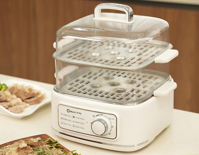 셀렉프로 멀티 찜기'는 3단으로 구성된 대용량 설계 의 전기찜기로, 최대 9리터의 재료를 활용할 수 있다.