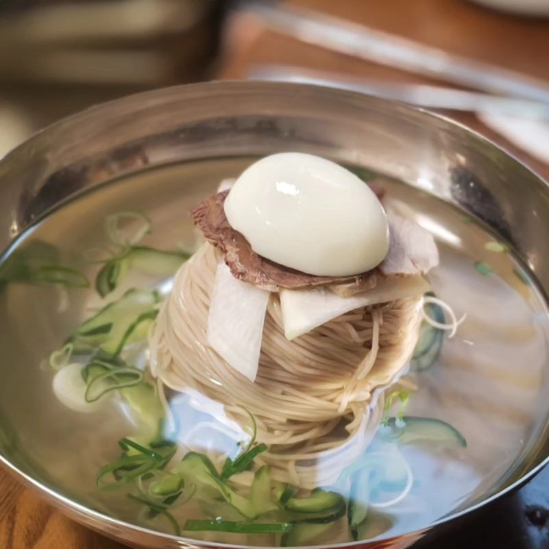 특급 호텔 출신 국가 공인 조리 기능장 셰프의 손맛이 담긴 평양냉면을 맛볼 수 있는 곳. 작은 평수의 반지하에 위치해 있지만 흰색 벽면과 환한 조명으로 깔끔한 인상을 준다. 대표 메뉴 ‘물냉면’은 국내산 1등급 양지로 담백한 맛을 살린 육수에 맷돌로 제분한 메밀면과, 배, 오이, 고기, 무, 지단 고명을 올려 마무리했다. 은은한 육향이 기분 좋게 올라오는 육수는 간이 어느 정도 되어 있어 초심자도 쉽게 접근할 수 있다. 빻는 순간부터 향이 날아가는 메밀의 특성을 고려하여 메밀을 조금씩 자주 맷돌로 빻아 만든 면발은 메밀의 구수한 향을 물씬 느낄 수 있다.
