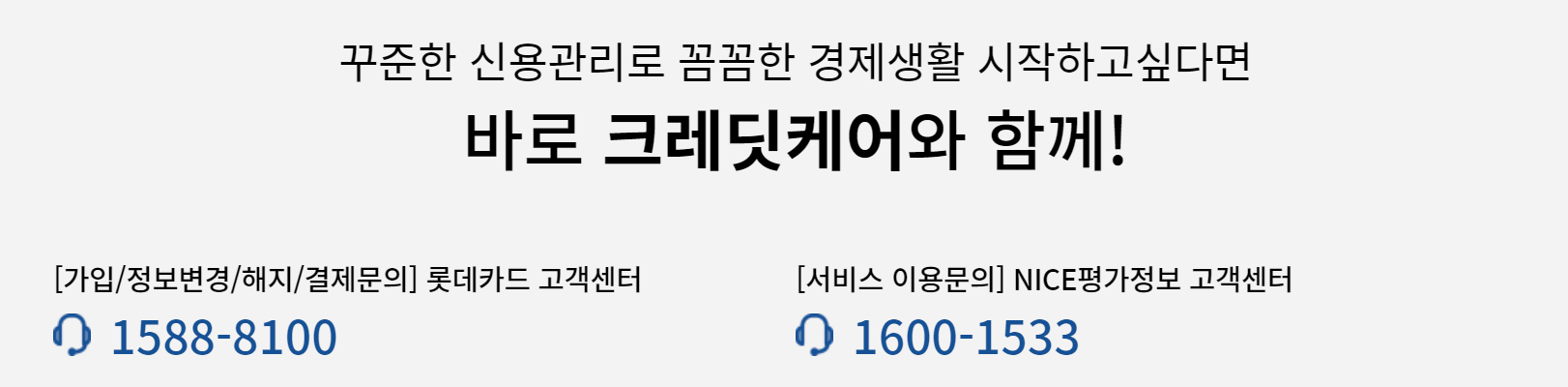롯데카드 고객센터에 전화하여 상담원에게 크레딧케어 서비스 가입을 요청할 수 있다.