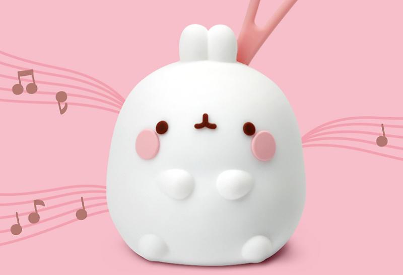 하얀 토끼 몰랑이도 휴대용 미니 스피커로 만들어졌 다. 작고 귀여운 사이즈를 가지고 있어 야외 활동에서 활용하기 좋으며, 가방에 달아서 액세서리로도 활용 할 수 있다. 부드럽고 견고한 실리콘 재질을 채택했으 며, 마이크로 5핀으로 간편하게 충전할 수 있다. 완충 시에는 최장 4시간 동안 사용할 수 있다. 몰랑이 스피 커 2개를 연결해서 스테레오 사운드를 즐기는 것도 가능하다. 가격은 19,900원이다.