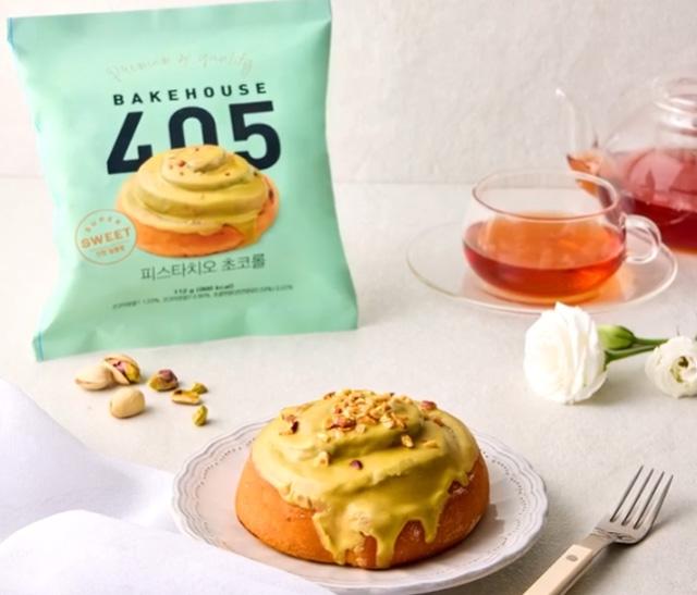 편의점 CU는 자사의 PB인 베이크하우스405로 요즘 화제인 피스타치오와 초코를 활용한 '피스타치오 초 코롤'을 출시했다. 빵 사이에 초코 아몬드 페이스트를 바른 후 돌돌 만 초코롤 빵 위에 피스타치오와 달콤한 가나슈를 없었다. 피스타치오와 초코의 환상적인 조 화를 즐길 수 있는 제품이다. 씁쓸한 차 종류와 함께 즐기면 더 맛있게 먹을 수 있는 베이커리다. 전국 CU 편의점에서 만날 수 있으며, 가격은 2,900원이다.