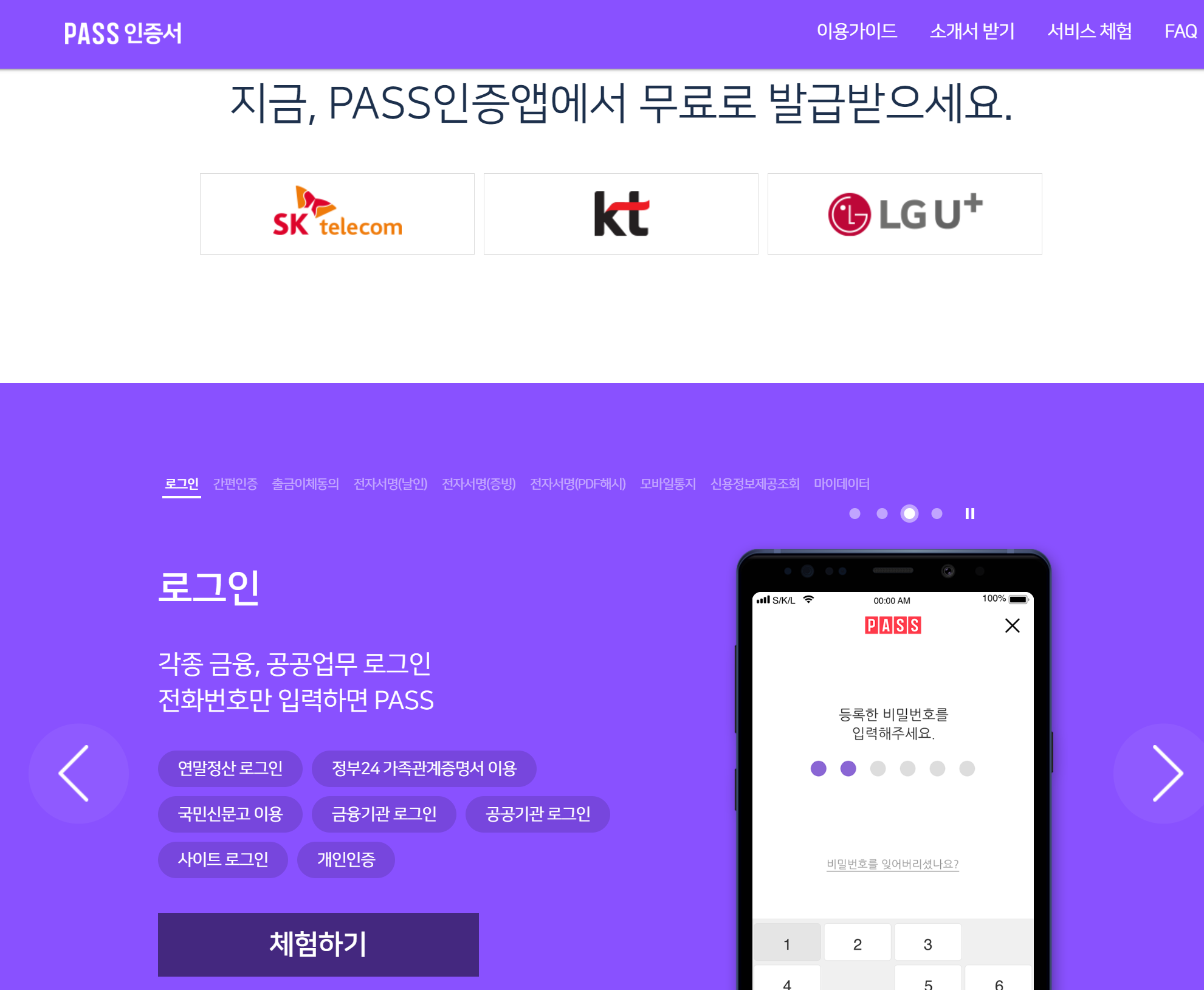 PASS 인증서 : 금융 거래 시 필요한 인증서를 발급받을 수 있습니다