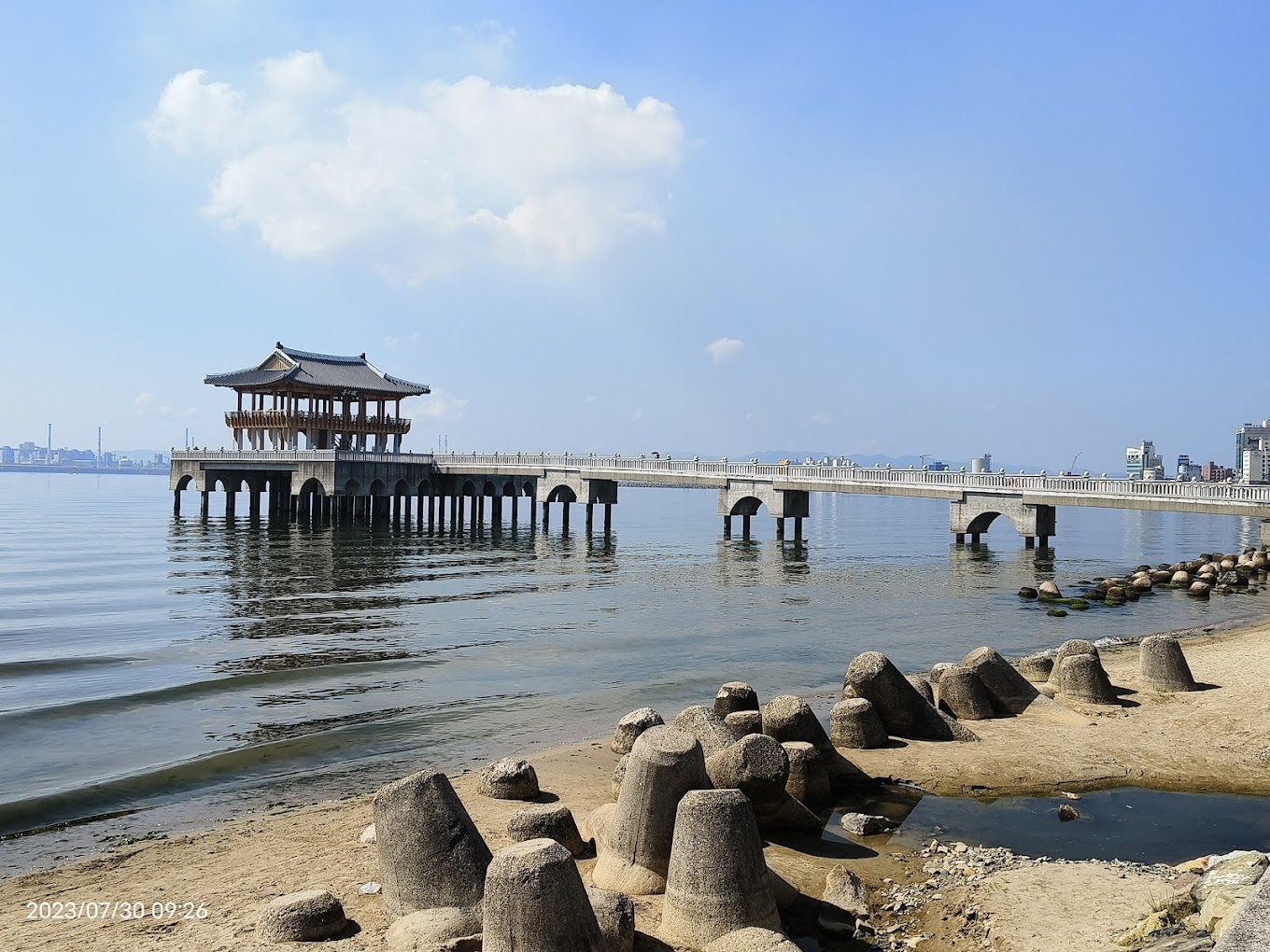 밤에,당신은 황금 빛에 의해 조명 파빌리온의 새로운 얼굴을 발견 할 수 있습니다. 바다에 떠있는 전통적인 스타일의 건물,다채로운 인공 조명 사이에 존재감을 과시하는 은빛 달,포스코의 야경을 한 프레임으로 포착하여 멋진 사진을 찍으십시오. 포항의 대표적인 야경 명소이기 때문에 인상적인 사진을 찍을 수 있습니다. 부두와 파빌리온을 배경으로 사진을 찍는 것은 좋지만 파빌리온을 올라 해변의 아름다운 풍경을 포착하는 것도 좋습니다. 환상적인 야경으로 널리 알려진이 곳은 사진에서 캡처 할 멋진 순간을 제공 할 것입니다.