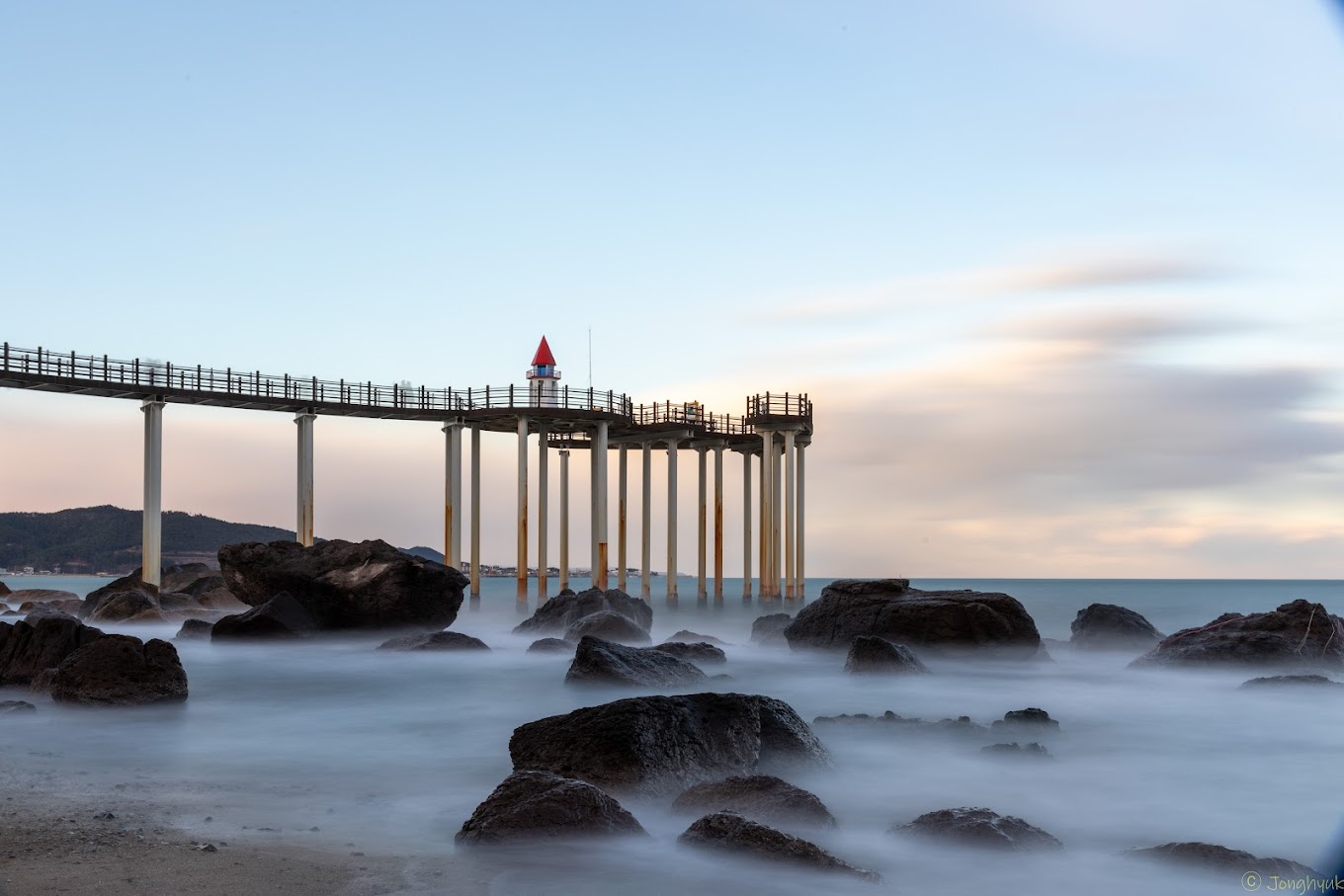 밤에,당신은 황금 빛에 의해 조명 파빌리온의 새로운 얼굴을 발견 할 수 있습니다. 바다에 떠있는 전통적인 스타일의 건물,다채로운 인공 조명 사이에 존재감을 과시하는 은빛 달,포스코의 야경을 한 프레임으로 포착하여 멋진 사진을 찍으십시오. 포항의 대표적인 야경 명소이기 때문에 인상적인 사진을 찍을 수 있습니다. 부두와 파빌리온을 배경으로 사진을 찍는 것은 좋지만 파빌리온을 올라 해변의 아름다운 풍경을 포착하는 것도 좋습니다. 환상적인 야경으로 널리 알려진이 곳은 사진에서 캡처 할 멋진 순간을 제공 할 것입니다.