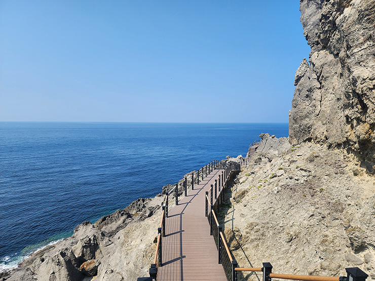 이 고갯길을 넘어 잘 정비된 데크로드를 따라가면 해안 기암석(국가지질공원암석) 위로 길게 이어진 데크로드를 또 만나게 된다. 오늘은 다음 일정을 위해 마음 정리를 하지만 언제고 예정처럼 이 길을 다시 걸어보고 싶다.