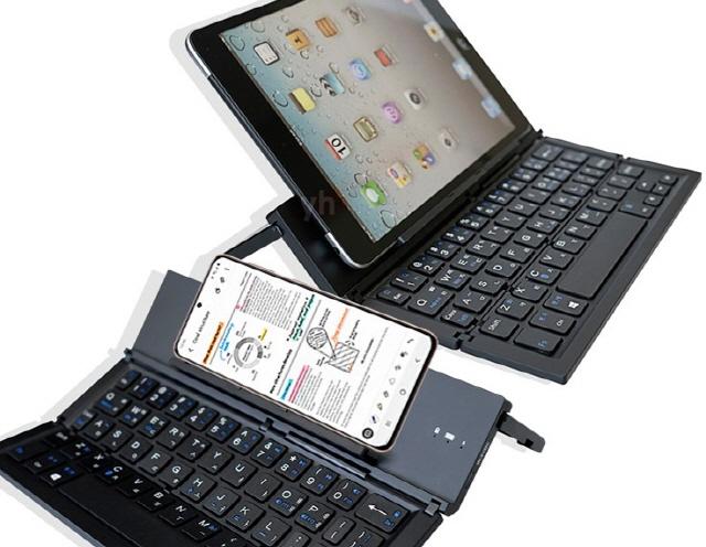 블루투스 키보드 gni-602'는 접었을 때 두께가 20m, 너비가 55mmm에 불과한 키보드다. 너비가 획기적으 로 짧아질 수 있는 건 이 제품이 접을 수 있는 키보드 이기 때문이다. 부드러운 팬터그래프 방식의 키를 탑 재했으며, 두 대의 기기와 페어링할 수 있는 멀티페어 링 키보드다. 앱스토리몰에서 45,800원의 판매가로 판매 중이다.