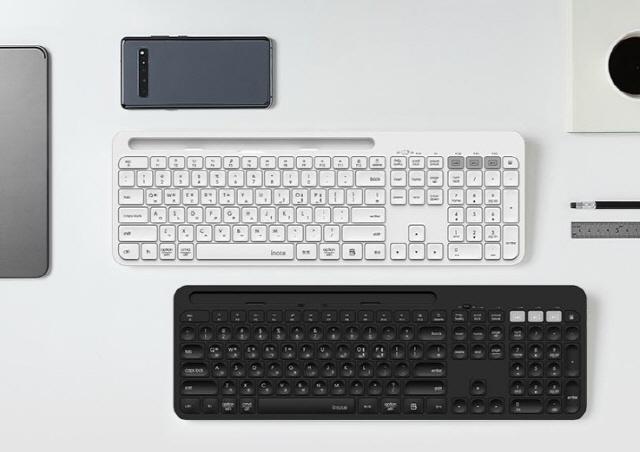 아이리버의 블루투스 키보드는 세계적인 스위스의 항 균 박테리아 제품 생산 기업과 기술 제휴를 맺은 항균 키보드다. 블루투스 단말기 2대와 2.4G12 무선 연결까 지 총 세 대의 멀티페어링을 지원하며, 0S별 맞춤 레 이아웃으로 변경할 수 있다. 이 제품 또한 제품 상단 에 스마트 디바이스를 거치할 수 있는 거치대가 있어 편리하다. 온라인 오픈마켓 등지에서 4만 원 내외의 판매가로 구매할 수 있다.