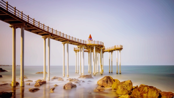 영일대에는 해상건축물이 하나 있습니다. 바다 위에 자리 잡은 영일대 정자에 가면 바다한가운데 있는 느낌이 듭니다. 겨울의 차가운 바람과 함께 바라보는 정자 풍경은 고즈넉하면서도 인상적이랍니다.
