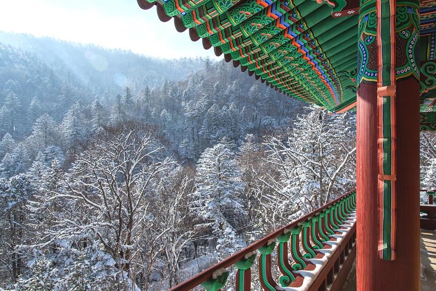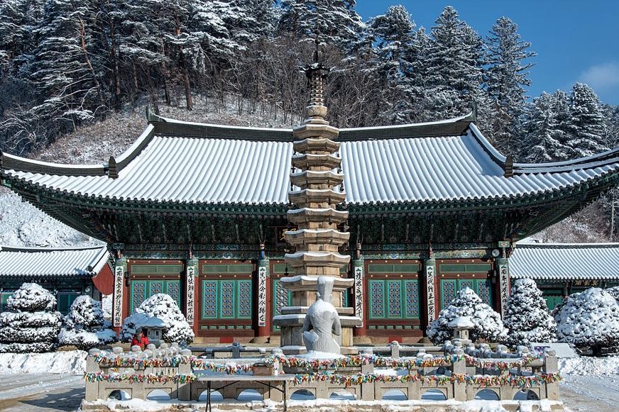 강원도의 깊은 산골자락에 자리한 암자에 눈이 내리면, 아름다운 설경을 선사하는 절이 하나 있습니다. 바로 오대산 내에 있는 월정사인데요. 하얀 눈이 내리면 월정사로 향하는 관문인 ‘전나무 숲길’도 설국으로 변하고 월정사 전각의 지붕 또한 눈을 있는 그대로 품게 되죠.