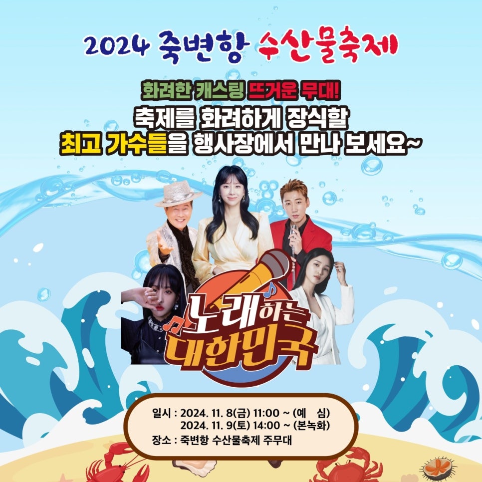 죽변항 수산물축제 주무대에 오를 출연 가수 라인업이 확정되었습니다 ~ 와 박수^^