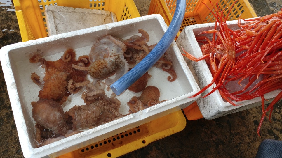 즉변항에 좌악 펼쳐 놓고 진행되는 수산물 경매 체험도 진짜 볼거리입니다.