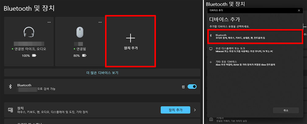노트북 또는 태블릿의 블루투스 설정 메뉴에서 이어폰을 추가 기기로 연결합니다.
