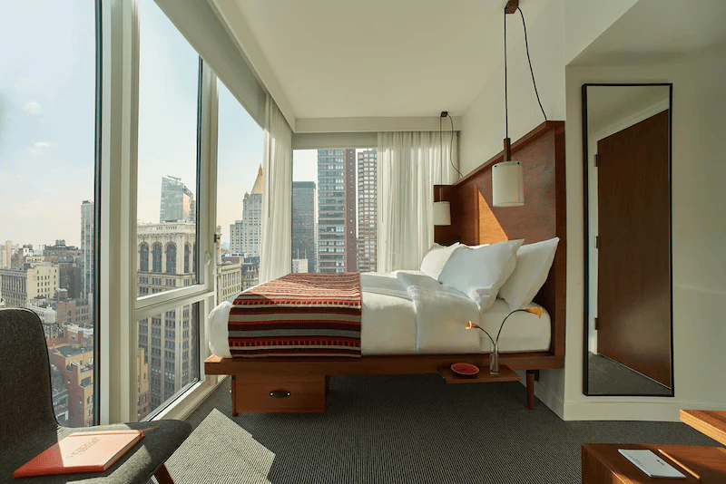 또 뉴욕 알로 노매드 호텔은 감각적인 인테리어가 돋보이는 객실 침대에 가만히 누워 엠파이어 스테이트 빌딩을 비롯한 뉴욕의 마천루들을 감상할 수 있는 시티 뷰 맛집으로 유명한데요. 최고의 뷰를 보기 위해선 가능한 가장 높은 객실을 예약하는 게 꿀팁입니다.