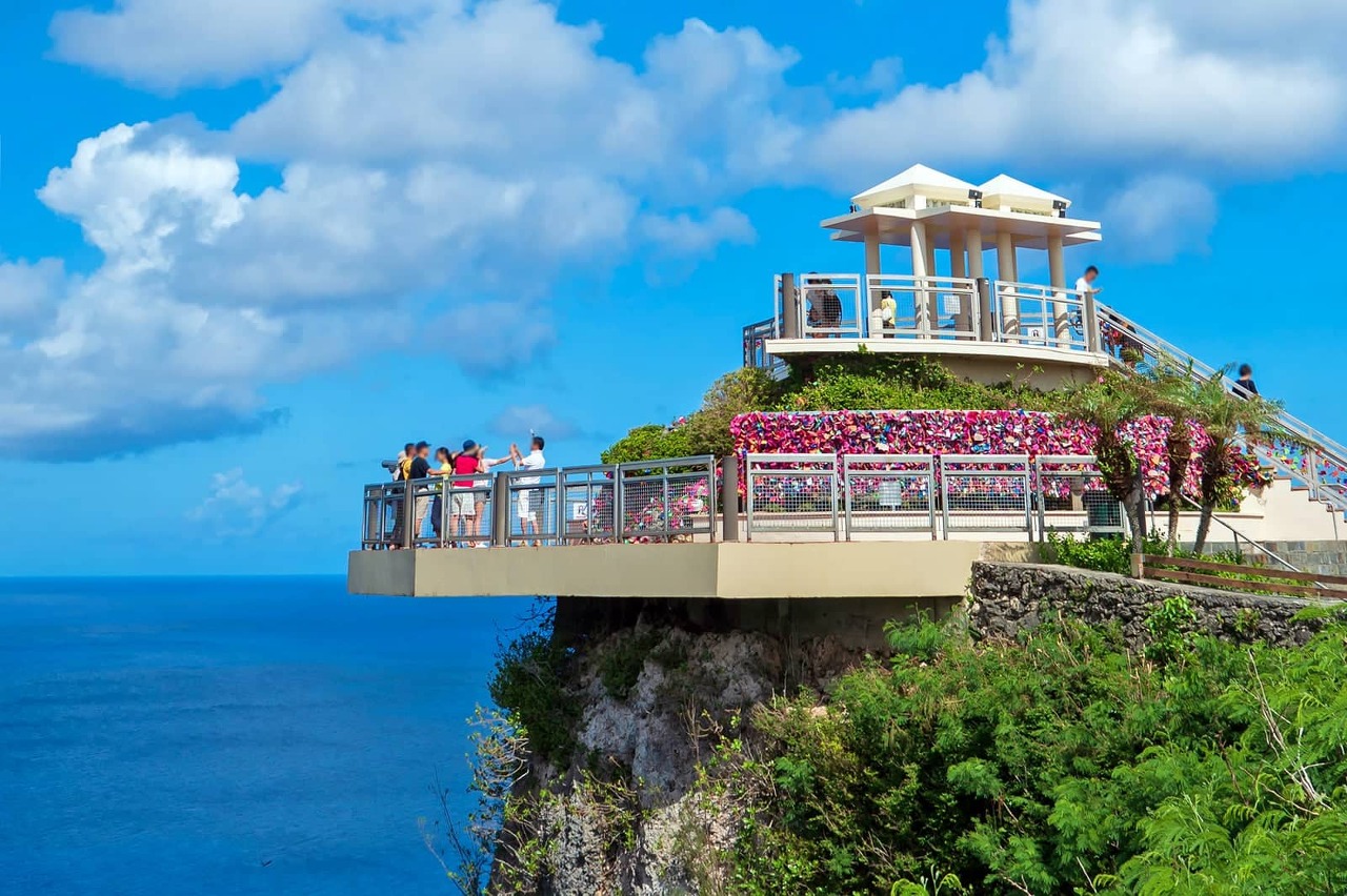 타망의 투 러버스 포인트는 괌에서 가장 상징적인 장소 중 하나로, 가파른 절벽 너머로 필리핀 바다의 숨막히는 전경을 감상할 수 있는 전망대입니다. 절벽은 400피트 높이에서 파도가 부서지는 바다로 떨어지며, 울퉁불퉁한 바위 위를 걷거나 망원경을 통해 먼 곳을 바라볼 수 있습니다.