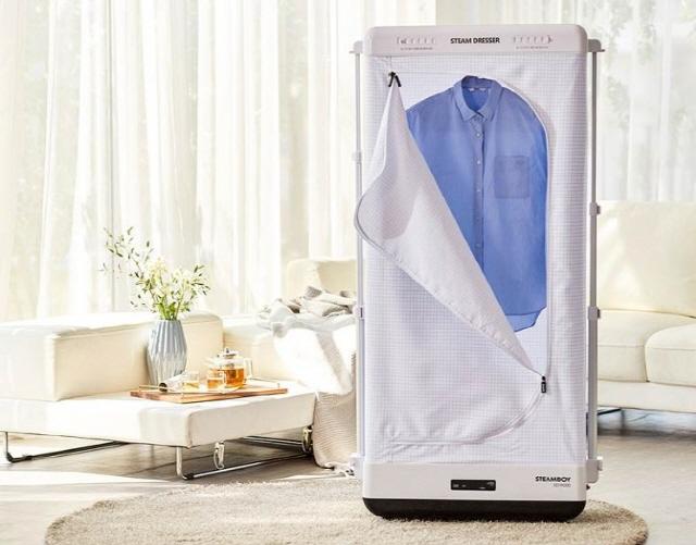 반대의 합리적인 가격으로 소비자들의 많은 선택을 받는 제품이다. 이 제품은 스팀 기능에 집중한 의류관 리기라 정의할 수 있다. 스팀백에 옷을 넣으면 백 안 에 70도 이상의 고온 스팀이 채워지고, 이것이 마르 면서 주름이 펴지는 원리를 활용했다. 여타 부가 기능 을 제외하고 스팀에만 집중한 덕에 소비자가를 낮출 수 있었던 것으로 전해진다.