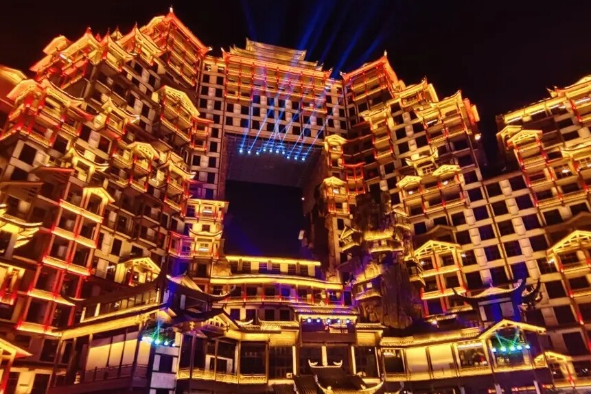 장가계 여행의 새로운 랜드마크라고 할 수 있는 72기루는, 실제로 보면 감탄이 절로 나올 만큼 독특하고 화려함의 극치를 들어내는 건물인데요. 높이가 무려 109.9m에 달하는 건축물로 멀리서도 눈에 띌 정도이며, 기네스북에 세계에서 가장 높은 기둥 건물로도 등재되었다고 합니다.