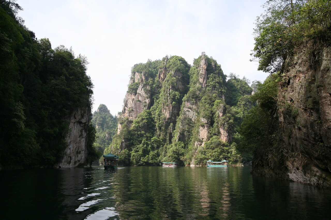 이 호수는 장가계의 다른 곳과는 다르게 물이 맑고 잔잔해서, 맑은 날엔 물 위에 기암절벽들이 그대로 비쳐 또 하나의 장관을 이룹니다. 영화 「아바타」의 영감이 된 장소 중 한 곳이기도 해서 더 유명해진 곳이기도 하죠.