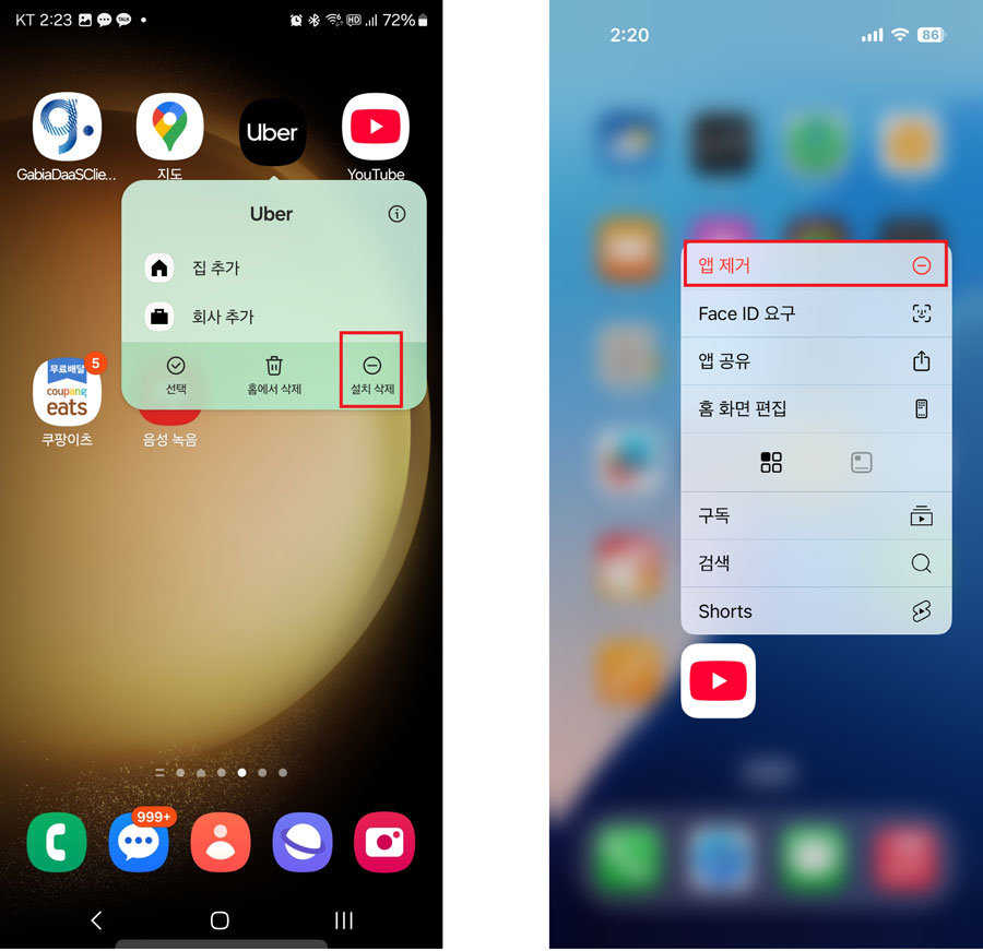 4. 설정 메뉴에서 앱 삭제 화면