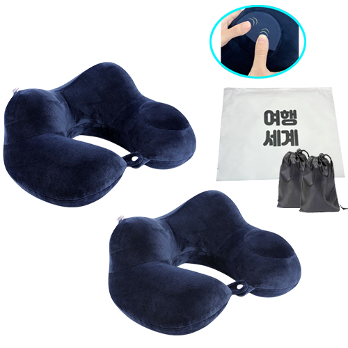 여행세계 1+1 숙면하는 여행 비행 기내 차량 휴대용 에어 목 베개
