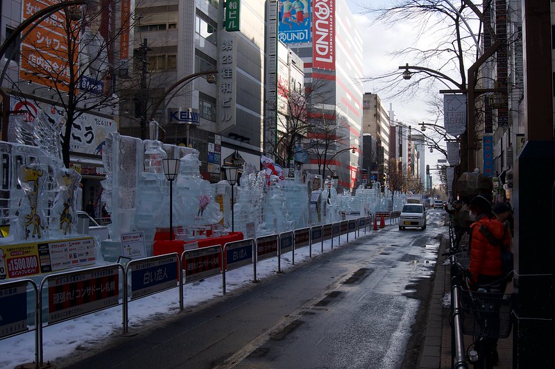 삿포로 눈 축제는 1950년, 고등학생들이 오도리 공원에 만든 눈 조각상이 인기를 끌며 시작했다. 축제에 참여하는 사람들은 해마다 증가해 1959년에는 2500명에 달하는 참가자들이 모여 설상을 만들었다. 이후 세계 각지 예술가들이 참여해 눈과 얼음을 조각하는 등 축제의 명성을 이어가고 있다. 축제기간 삿포로 곳곳에서는 눈과 얼음으로 만든 조각을 볼 수 있다. 그 중 가장 잘 알려진 장소는 오도리 공원, 스스키노 행사장, 츠도무 행사장 3곳이다.