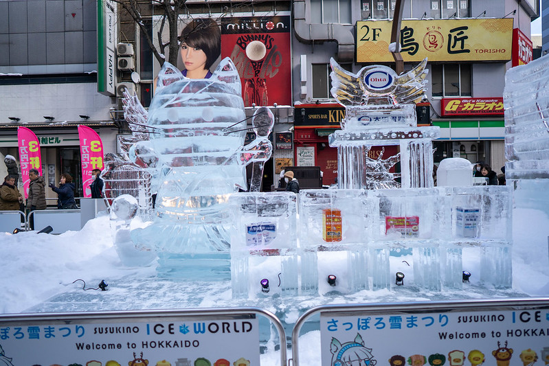 오도리 공원에서 멀지 않은 곳에 위치한 스스키노 행사장은 눈 조각이 아닌 얼음 조각을 전시한 곳이다. 매일 오후 11시까지 불을 밝혀 어둠이 내려앉으면 얼음조각은 더욱 아름답게 빛난다. 츠도무 행사장은 눈 미끄럼틀, 썰매장 등 체험 위주의 프로그램을 진행한다. 내부에서 따로 음식을 판매하고 있기에 가족 단위 관광객들이 많이 방문한다.