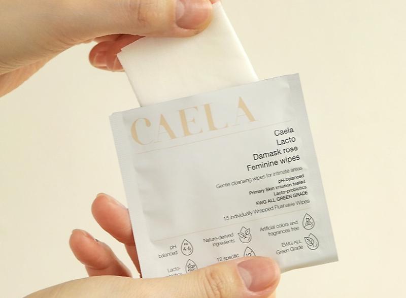 카엘라의 청결티슈 또한 pH 약산성 제품으로, 피부자 극 테스트를 마친 바 있다. 형광증백제, 색소, 합성향 료를 첨가하지 않았으며, 자연 유래 성분을 함유해 E WG 그린 등급을 획득했다. 호르몬 교란으로 각종 여 성 질병을 유발하는 파라벤 7종, 페녹시에탄올, 벤조 페논 등을 사용하지 않았으며, 피부 방어력 강화를 위 해 프로바이오틱스 유산균을 함유했다. 15매가 든 패 키지 하나를 9천 원에 판매 중이다.