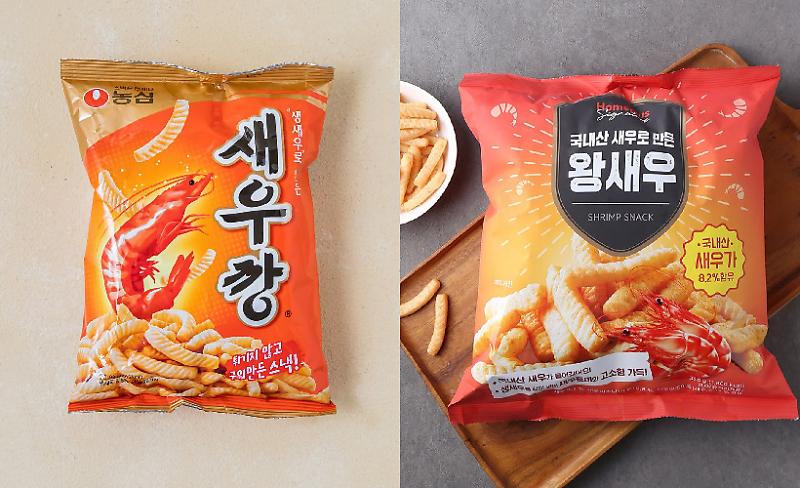 과자는 농심의 새우깡'이다. 1971년부터 생산되기 시작한 새우깡은 다양한 아류작의 출현에도 불구하고 꿋꿋하게 제자리를 지킨 과자다. 새우깡의 위상에는 미치지 못하지만, 나름의 대안으로 최근 주목을 받는 제품이 있다. 바로 홈플러스의 '왕새우'다. 비슷한 풍 미를 가지지만 더 양이 많고, 맛도 진하다는 평의 새 우맛 과자다.