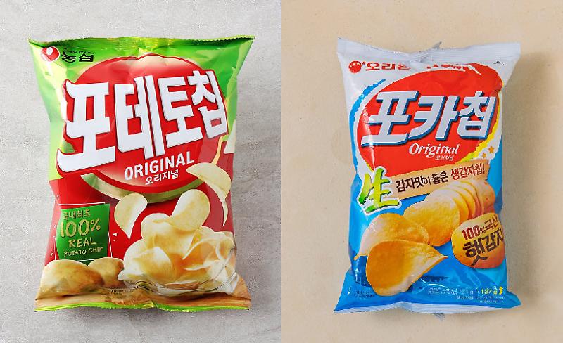 우리나라 최초의 감자칩 스낵은 농심의 '포테토칩'으 로 꼽힌다. 1980년에 최초로 출시된 포테토칩은 특 유의 짭짤한 맛으로 인기를 끌었다. 현재 감자칩 분야 에서 가장 유명한 브랜드로 꼽히는 포카칩'은 포테토 칩이 세상에 나온 지 8년 뒤에 출시됐고, 줄곧 두 제 품이 경쟁을 펼치게 된다. 현재는 그 어떤 과자보다도 큰 충격을 준 '허니버터칩'과 함께, 세 제품이 견고한3강 구도를 형성하고 있다.
