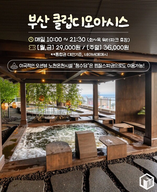 해운대 바다가 펼쳐지는 노천온천 부산 클럽디오아시스입니다. 부산 클럽디오아시스는 부산 최초, 국내 최초 도심형 보양온천으로 지정되어 있는데요. 고급스러운 인테리어로 조성된 실외 인피니티 풀장과 실내외 워터파크, 노천스파 시설인 청수당 등 다양하게 온천욕을 즐길 수 있습니다.