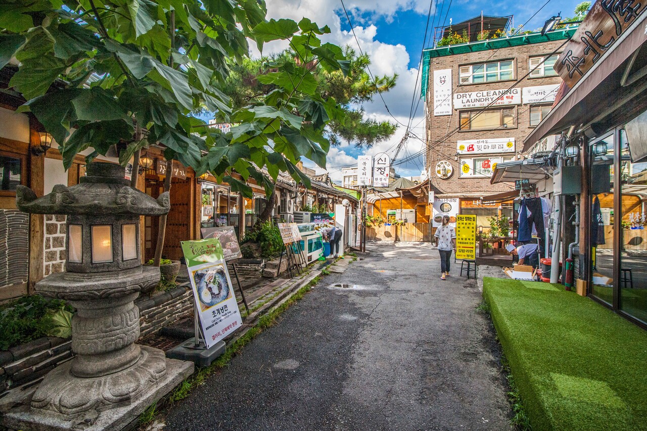 한국의 중심 서울, 그중에서도 정 중앙의 종로 골목에는 전통과 현대적인 분위기를 동시에 즐길 수 있는 익선동 한옥 거리가 있습니다. 좁은 골목길에는 전통 한옥을 리모델링한 카페, 레스토랑, 와인바를 통해 걷기만 해도 서울 여행의 다채로운 분위기를 즐길 수 있죠.