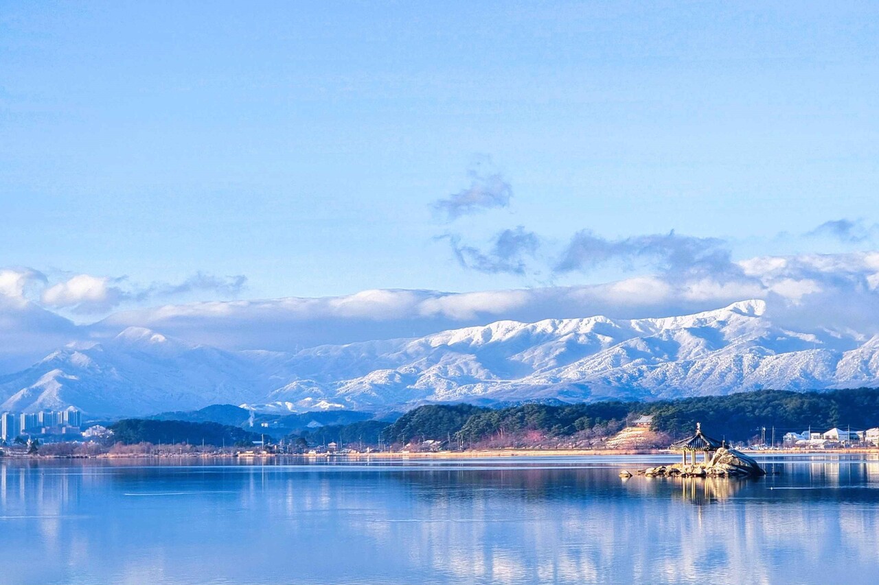 봄, 여름, 가을, 겨울 언제 찾아도 즐거운 강원도 여행. 강릉의 경포호는 겨울에도 여전히 잔잔한 호수의 매력을 간직하고 있습니다. 특히 호숫가를 따라 산책하며 차가운 공기 속에서 맑고 투명한 호수의 풍경을 감상할 수 있는 것이 포인트.