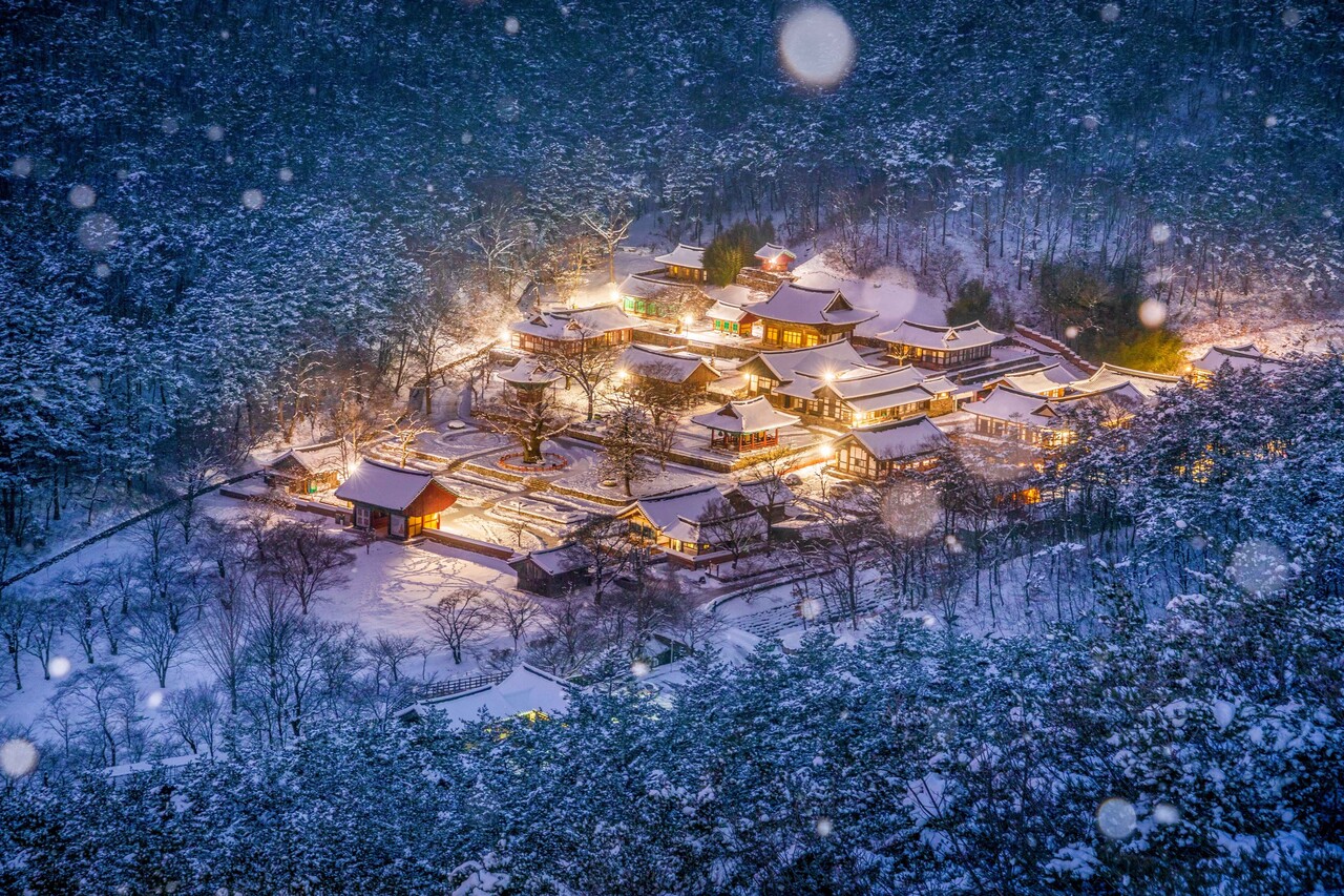 전나무숲길과 오래된 사철 건축물로 이미 유명한 내소사는 가을 단풍 명소로 알려져있지만, 눈 내린 겨울 설경 또한 일품인 겨울 여행지인데요. 내소사의 대웅보전과 단청이 눈 덮인 겨울 풍경 속에서 더욱 경건하고 평화로운 분위기를 자아냅니다.