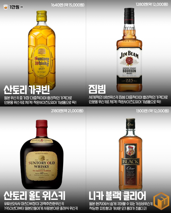일본 현지에서 쉽게 구매할 수 있는 가성비 위스키 적당한 피트향과 가벼운 오크 풍미가 조화를 이뤄 가격 대비 품질이 뛰어난 위스키입니다.