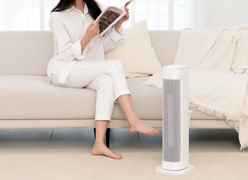 고순도 아연 도금 강판과 세라믹 발열체로 근거리부 터 원거리까지 효율적인 난방을 지원한다. 불필요한 예열 시간을 최소화하며 난방 효율을 높인 독자적인 PTC 세라믹 공법을 적용했다. 작동 시의 소음은 평 균 32dB 수준으로 조용하게 동작하는 슬림 온풍기다.