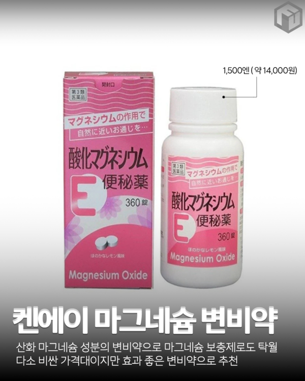 만성 및 일시적 변비를 완화하는 데 효과적인 켄에이 마그네슘 변비약입니다. 특히 마그네슘 성분은 장 내 수분을 증가시켜 변을 부드럽게 만들고, 장 운동을 촉진해 배변을 수월하게 만들어주는데요.