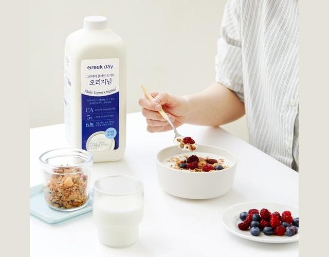 그릭데이 플레인 요거트 오리지널'을 출시했다. 신제 품은 그리데이가 만든 첫 플레인 요거트로, 1.8리터 와 2.3리터의 대용량 사이즈로 출시됐다. 맛과 영양 을 살리기 위해 무가당에 향료, 감미료, 안정제, 정제 수 등 6가지 합성 첨가물을 넣지 않았다. 신선한 국내 산 원유 99.9%를 사용했으며, m당 5억 마리의 유산 균과 100m당 105mg의 칼슘을 함유했다. 가격은 1.8 리터 제품 기준 7,980원이다.