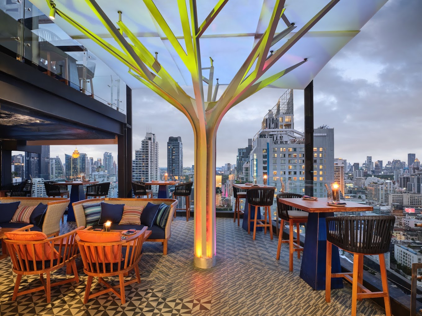 크루 루프탑 바 방콕은 방콕에서 가장 높고 가장 멋진 루프탑 바 중 하나입니다. 독점 레이블의 G.H. 멈 샴페인과 세계 각국의 별미 스낵 메뉴, 360도 전경을 즐길 수 있습니다.