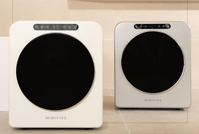 '미니파이브 미니 건조기'는 방 어디에 둬도 어울리는 감각적인 디자인의 제품으로, 아이보리와 메탈실버의 두 가지 색상을 고를 수 있도록 만들어졌다. 내통은 부식과 오염의 걱정이 없도록 스테인리스 SUS430 재질로 만들어졌으며, 항공기에 사용되는 고급 PTC 히터를 사용한 열풍 건조 방식의 제품이다. UV-C 램 프를 내부에 적용해, 유해균을 살균하고 곰팡이로 인 한 냄새까지 방지했다. 본 제품의 공식몰 판매가는 379,000원이다.
