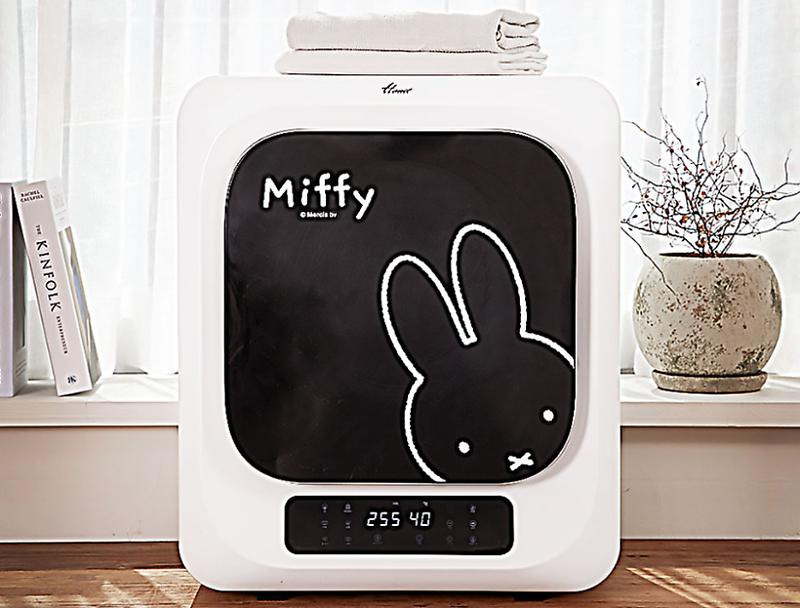 캐릭터 상품을 선호한다면 한일전기의 미피 미니 건 조기'도 고려해볼 만하다. UV-C 램프를 적용해 옷 구 석구석의 세균을 제거하고, 깨끗하고 안전하게 의류 를 관리할 수 있다. 산소를 태우지 않고 예열 없이 공 기를 즉시 데워 순환시킬 수 있는 PTC 히터를 적용 한 제품이다. 최대 3kg 의 용량이며, 대용량 건조기에 사용되는 스테인리스 SUS304 재질의 드럼을 장착 했다. 공식몰 판매가는 239,000원이다.
