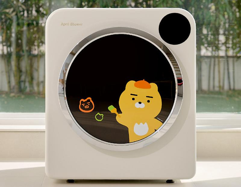 귀여운 디자인의 건조기 제품을 찾는다면 카카오프 렌지 미니 건조기'가 좋은 선택이 될 것이다. 카카오 프렌즈 IP를 활용해, 라이언 캐릭터의 모습을 도어에 그려 넣은 미니 건조기다. PTC 히터로 옷감 손상 없 이 건조할 수 있으며, 내부 용량은 5kg으로 설계됐다.