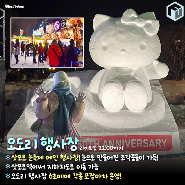 또 오도리 행사장의 중간 지점 6초메에서는 홋카이도 각지의 특산품, 음식이 판매되는 포장마차가 마련될 예정이며 미끄럼틀, 컬링체험 등 다채로운 체험 프로그램과 축제 기프트샵도 있다고 하니 놓쳐선 안되겠죠.