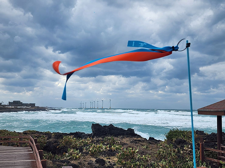 살짝 오르막에 올라 다시 월령포구 방향을 바라보니 방파제를 집어삼키려는 듯 거친 파도가 끊임없이 흔들린다.