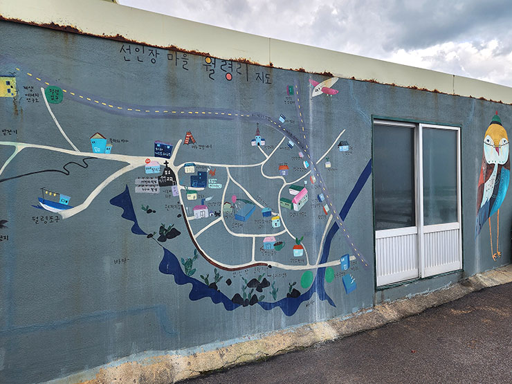 선인장 마을 월령리 지도가 벽화로 그려진 동네.