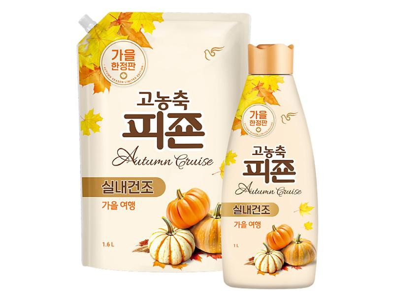 피죤은 시즌 한정 제품으로 섬유유연제 '고농축 피죤 가을 여행'을 출시했다. 신제품은 베스트셀러인 고농 축 피죤에 톱 노트로 그린과 프루츠를, 미들 노트로 라일락과 재스민을, 베이스 노트로 머스크, 우디를 적 용해 상큼하면서도 포근한 향기를 구현했다. 자사 일 반 섬유유연제 대비 향기를 4배 강화했으며, 불필요 한 화학 성분인 증점제, 미세 플라스틱, 방부제, 색소 가 첨가되지 않았다. 1.6리터 제품 2팩을 공식몰에서 12,900원의 판매가로 판매 중이다.