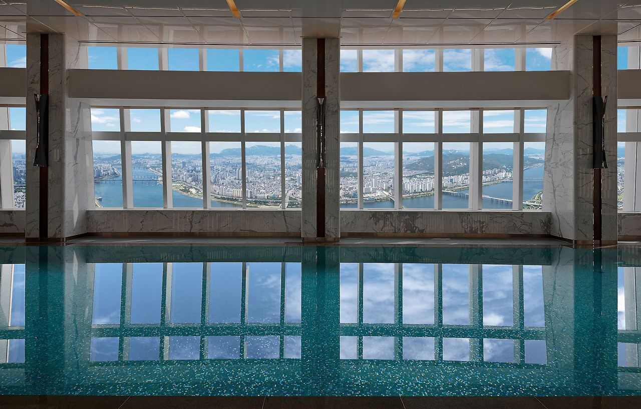 서울의 스카이라인을 장식하는 대한민국의 랜드마크. 시 그니엘 서울! 서울 가장 높은 곳에 위치해 발 아래 한강과 석촌호수 그리고 분주한 도시 풍경을 마음껏 감상할 수 있어요. 이곳에서 가장 메인으로 꼽히는 부대시설은 85 층에 위치한 실내 수영장인데요. 서울의 하늘을 마주하며 여유롭게 유영을 즐겨보세요. 7년 연속 미슐랭 스타를 획 득한 비채나와 환상적인 서울 의 밤을 선사하는 더 라운 지도 호텔 상층에 위치해 있답니다!