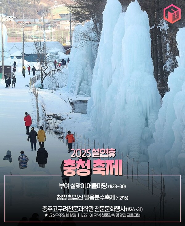 충청도에서 설 연휴에 가볼만한 곳을 찾는다면, 겨울왕국을 연상케하는 청양 칠갑산 얼음분수축제를 추천합니다. 웅장한 인공 빙벽이 겨울만의 포토존이 되어주며, 빙어잡기, 얼음썰매, 눈썰매 등 다양한 겨울 액티비티도 즐길 수 있는 연휴 축제이죠.