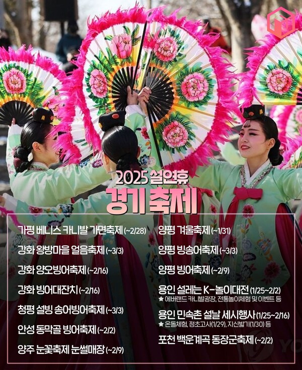 2025 설 연휴에는 다채로운 축제들이 전국에서 펼쳐지는데요. 경기 지역이 가장 축제가 많습니다. 겨울 축제와 빛 축제, 설맞이 특별 행사 등 다양한 축제가 예정되어 있죠.
